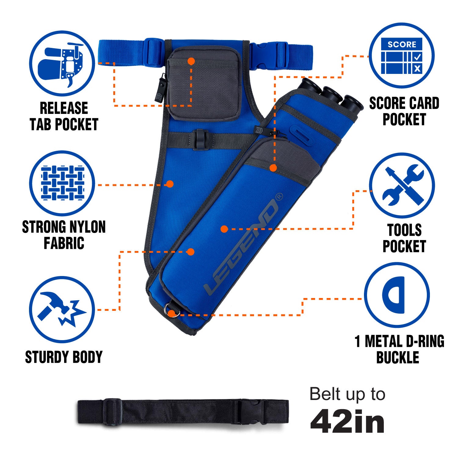 This super tough quiver for arrows from Legend is made from durable weather resistant woven nylon. We set ourselves the challenge of crafting the best value for money hip quiver on the market. With uncompromising quality and meticulous attention to detail, this hip quiver for arrows puts inferior recurve quivers to shame.