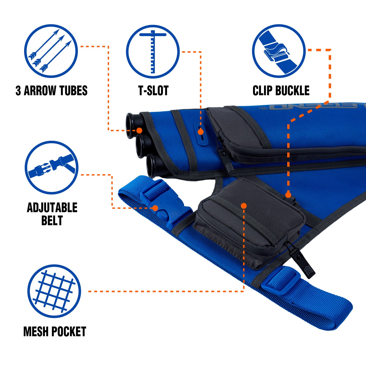 The quiver FIRST from Legend is brimming with different ways to store your archery accessories. We’ve included a large zippered front pocket as well as a flat pocket to keep your score card. This archery quiver also has a zippered pocket for a release tab, an outer mesh pocket as well as a loop to hang your T square ruler. For an elite archery quiver that never compromises on storage, the quiver FIRST is the answer.