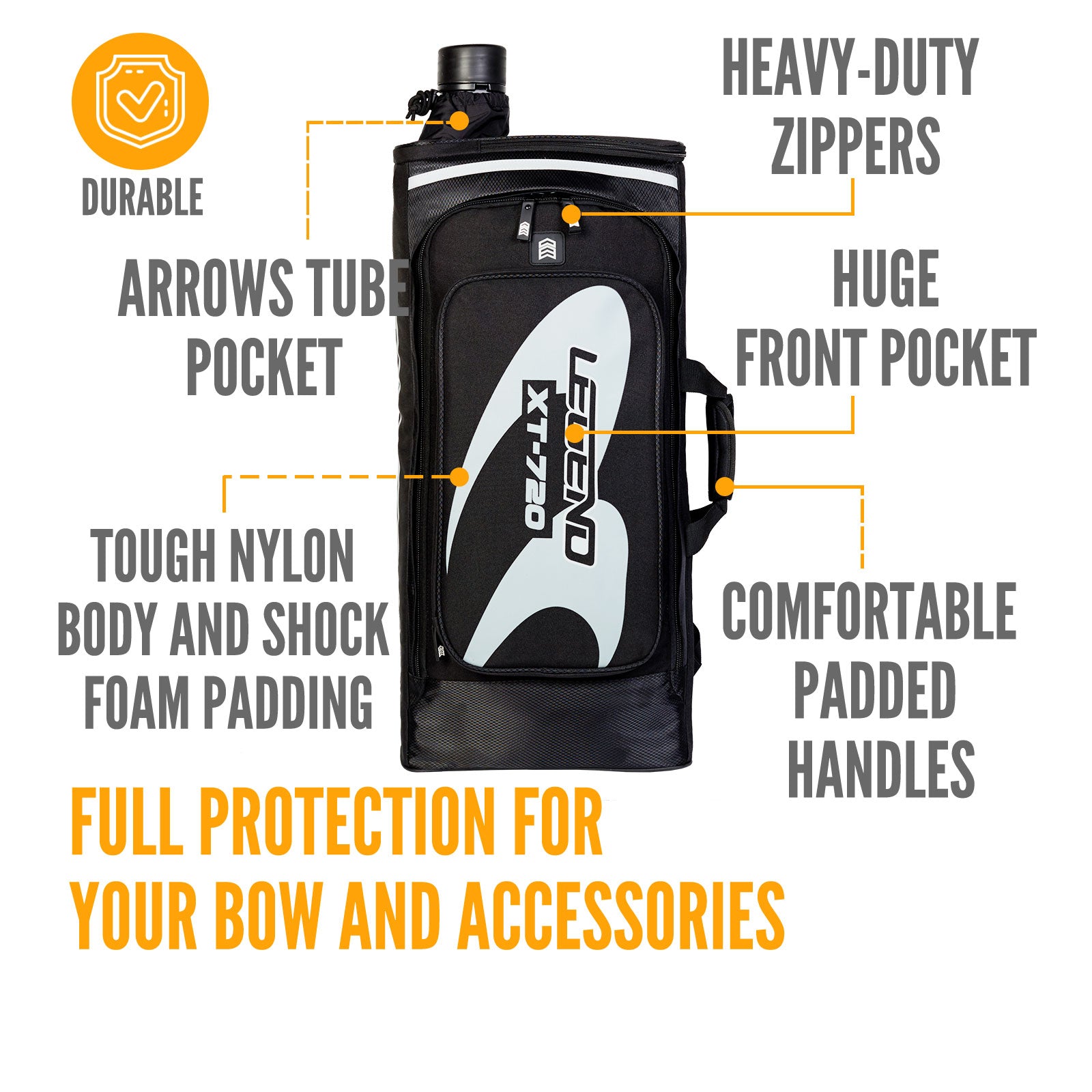 DURABLE & LIGHTWEIGHT - We've created a perfect balance between durable bow and equipment protection while still maintaining lightweight portability and ease of use. Our unique blend of tough nylon and shock foam padding provides great protection while being much lighter than a hardshell case.