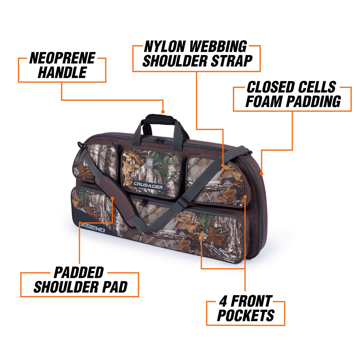 • TOUGH; The Crusader compound bow case features a weather resistant, camouflage nylon exterior and 2 interior cam pockets to protect your equipment; Our bow hunting accessories use thick closed cell foam padding to guard your expensive compound bow and feature two internal fastening straps for transport protection